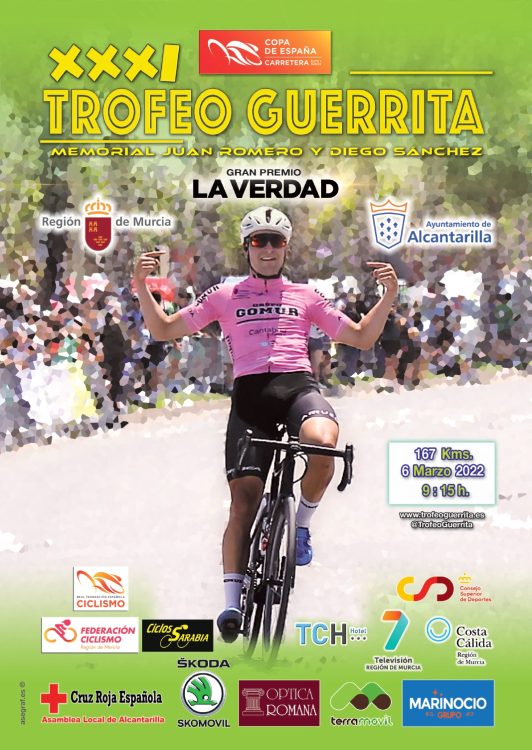Este domingo, 6 de marzo, se disputa la XXXI edición del Trofeo Guerrita–Memorial Juan Romero y Diego Sánchez, con salida y meta en Alcantarilla y en el que participarán 175 ciclistas de 25 equipos de las categorías Élite y Sub-23.